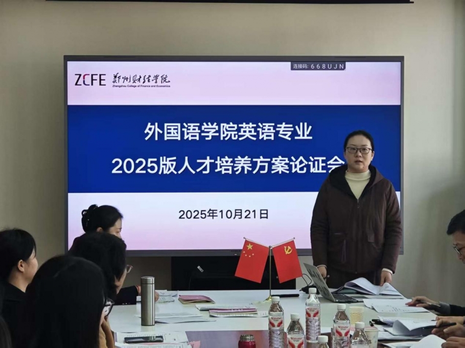 会议特别邀请了来自郑州师范学院、新乡学院、华北水利水电大学、河南工程学院和河南财经政法大学的专家对25版人才培养方案作出指导。与会专家一致认为,外国语学院新版人才培养方案整体框架科学合理、方向明确,既体现了学院的学科优势与国际视野,又彰显了服务区域经济发展的办学特色。他们充分肯定了英语专业在人才培养方案修订中的系统思考和实践探索,并就培养目标完善、课程体系优化、专业特色凝练等方面提出了建设性意见,建议在方案中增加专业简介、完善培养目标表述,进一步凸显“财经特征”“中原文化”“黄河文化”等地域文化内涵,使方案更具系统性与文化底蕴,强调在方案设计中应继续强化学校总体定位与学院特色的对接,在课程体系、拓展模块和专业方向上进一步突出智能化与国际化特征,完善课程名称与教学环节对应关系,确保方案的逻辑严密与执行可行。